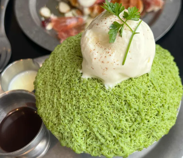 이번에도 기가 막힌 빙수가 하나 등장했다고 해요. 짜장 + 옥수수 조합! ‘짜장옥수수빙수’가 바로 그것인데요! 깊은 짜장의 풍미 위에 초당옥수수의 달콤함이 얹혀지는 파괴적 단짠 조합! 🌽⚡ 또 다른 시그니처 메뉴인 🌿 ‘완두빙쑥’(완두콩 + 쑥)은 고소한 향과 몽글한 식감으로 어릴 적 여름방학까지 떠오르게 만드는 마법 같은 맛이에요! 🏖️