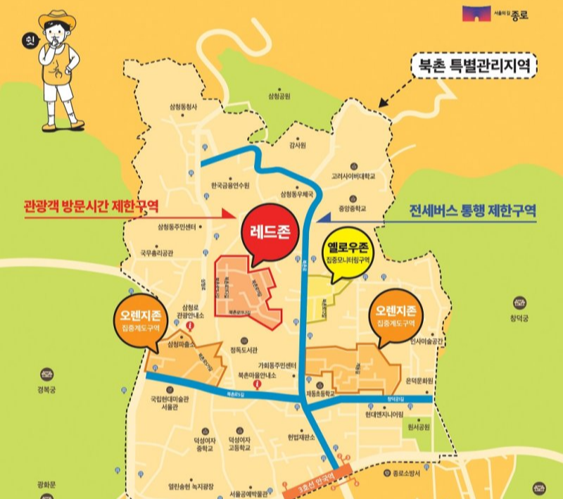 통근버스, 학교버스, 마을버스 등은 구청 사전 승인 시 통행 허용 (신청은 종로구청 누리집에서 가능)